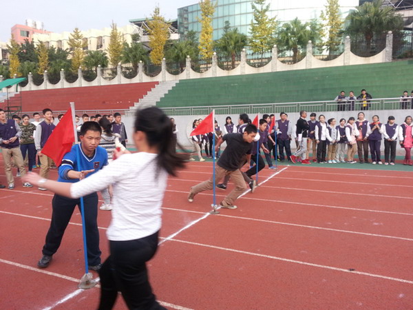 我们的课外生活丰富多彩——初2014级迎面接力比赛