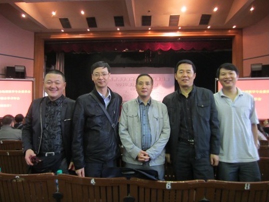 上图为陈维老师(左二)与重庆市地理教研员张老师,南岸区地理教研员毛老师等在会场合影