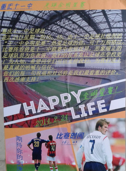 2014224星期一1645,由十一中足球社组织的“十一中全明星赛”开赛了!热爱足球的你,可千万别错过!