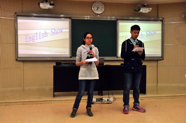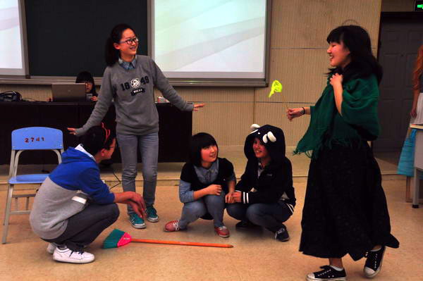 2014年3月16日晚,高2016级17班在博文楼4楼多功能教室开展了一场精彩的英语话剧表演。此次活动由班主任彭椿惠和英语老师文艺发起,全班同学分为6个组全员参与。同学们由3月初开始准备表演需要的各种服装道具,并且自己编写剧本并认真排练。这次活动充分展现了全班同学精湛的演技和英语口语表达能力。