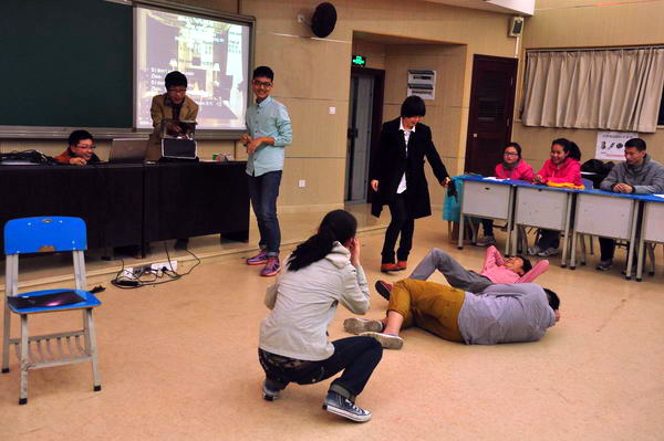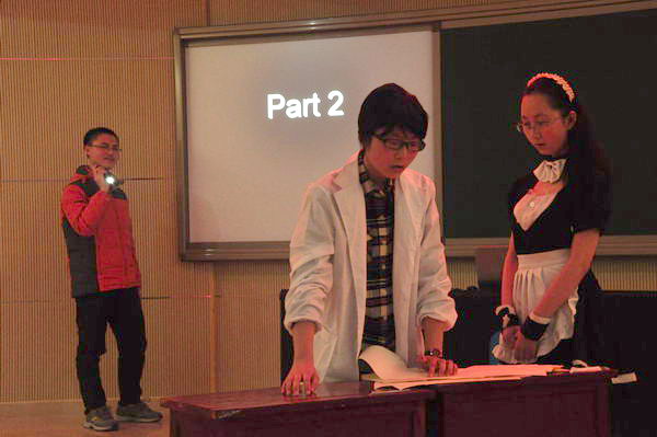 《夏洛克》:第五组的同学再现了英国小说家阿瑟•柯南•道尔笔下的神探夏洛克•福尔摩斯破案的精彩画面,同学们仿佛置身于那个惊心动魄的案发现场。