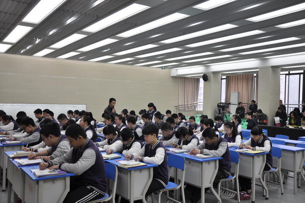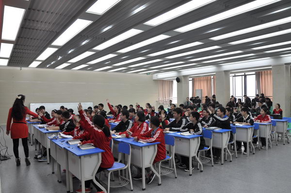 2014年3月18日上午,初2014级语文备课组敖天明老师和张欣老师在校多媒体1室就《三峡》一诊文言文复习课题展开了同课异构教学展示。展示中,两位老师大胆尝试,各展所长,异彩纷呈:敖天明老师熟悉文本,淡定自然,环节设计由浅入深,特别针对学生学习文言文的难点,设计了比较阅读环节,指点方法并现场练习,注重过手;张欣老师巧创氛围,充分调动学生积极性,注重小组合作学习,强调“先学后教,以学定教”,课堂活跃而有序,注重学法指导,授人以渔,实现复习高效。