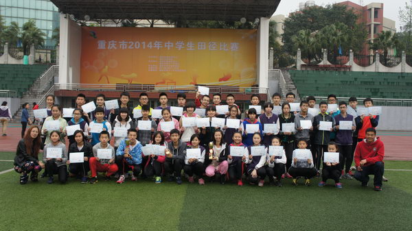 由重庆市教委、重庆市体育局主办,南岸区教委、重庆十一中承办的重庆市2014年中学生田径运动比赛3月27日至30日在十一中运动场举行。全市共46个队,38个区县参赛,分为甲组(区组)、乙组(县组)、丙组(直属校及田径项目试点学校)在14个大项中展开角逐。参赛运动员、教练员共计1225人,120余名教师参与裁判工作。