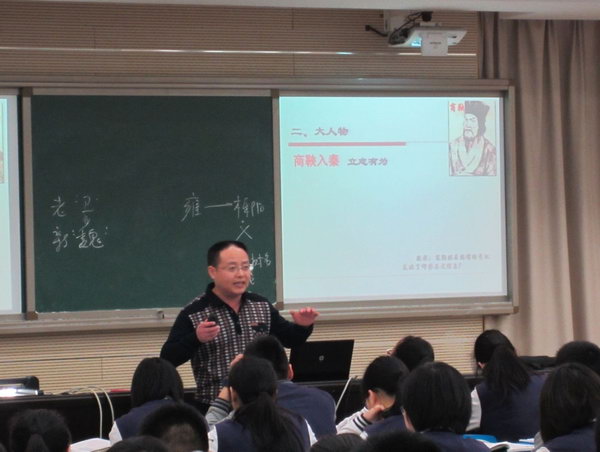 汪建华老师运用 “预习反馈”、“合作探究”、“师生互动”等方式,体现了学校倡导的“先学后教,以学定教”的教学理念,引导学生以“商鞅的时代”、“商鞅的际遇”、“商鞅的变法”、“商鞅的命运”为线索,感受了春秋战国这一变动、变革与发展的时代以及身负熊才、胸有大志的商鞅,流落魏地、大志难伸,终在秦国一展雄才的经历,让坚毅、果敢、严厉执法、不徇私情的商鞅的伟大形象根植于学生心中,同时,让学生从商鞅改革认识到今天的全面深化改革的重要意义。