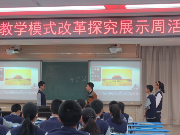 2014年4月21日,初2016级的两位历史老师杨万华和童朋飞在学校多媒体教室一室进行了关于《明朝对外经济文化交流》的同课异构教学活动。根据学校的“先学后教,以学定教”的课改要求,两位老师都根据学生的实际情况进行了相应的教学活动设计。杨万华老师采用的是材料问题教学法,通过问题的设计层层递进,引导学生在活动中一步一步的跟随问题层层深入,同时采用多种方法进行教学活动。在教学内容上不仅仅局限于课本当中的知识,同时还增加很多课外的知识,不仅仅局限于历史知识,还把相应的地理,生物等相关的知识都进行了渗透。童朋飞老师则是根据学生的知识面丰富的特点进行了教学设计,更多的是让学生自己来进行教学活动,学生自己讲解,自己表演,在活动中增强学生的实际能力,充分体现了老师主导,学生主体的教育教学理念。