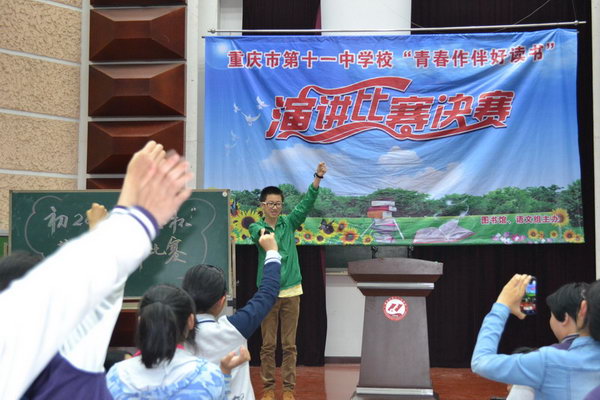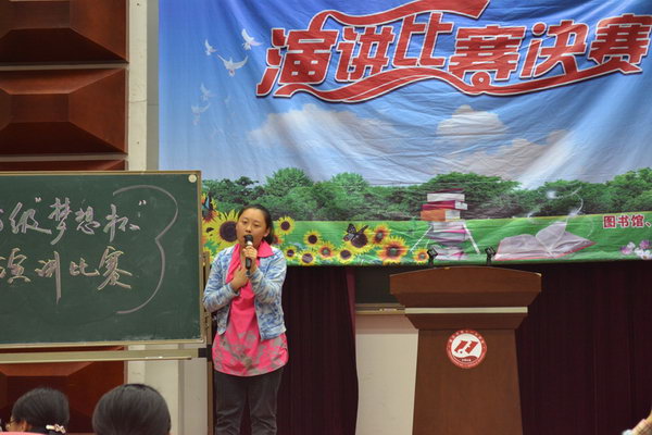 初2015级“梦想杯”英语演讲比赛于2014年4月21日15:10正式开幕。一开始,主持人热情洋溢的开场白立刻点燃了观众的激情,更有同学们发现自己的英语老师是评委时而响起的不绝掌声。