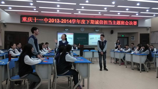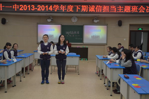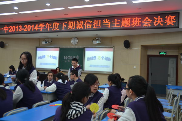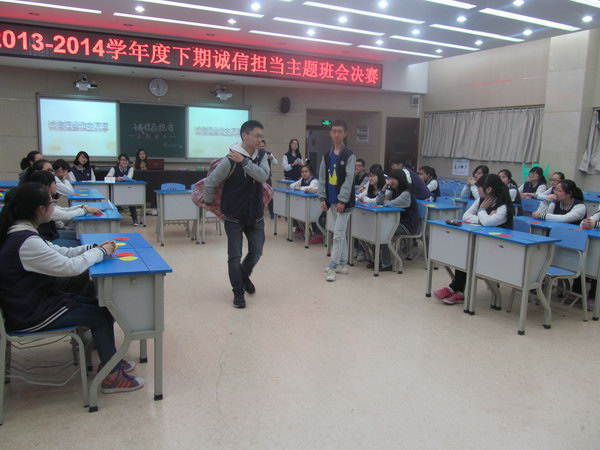随着一阵热烈的掌声和优美的歌声,高2015级五班“诚信担当,谁主沉浮”主题班会落下帷幕。