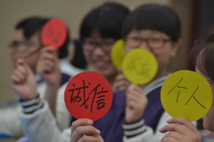 主持人、社会问题专家、消费者、“骆总”亲友团,同学们积极融入自己的身份中,发言分析妙语迭出,现场不时响起热烈的掌声和欢笑。班会在细处展现出普通人的真实困境,在高处分析了当代中国社会的制度欠缺,让同学们充分理解现实的诚信意味着的责任,在矛盾中感悟个人和社会实质上的统一关系,并由此作出正确的选择。