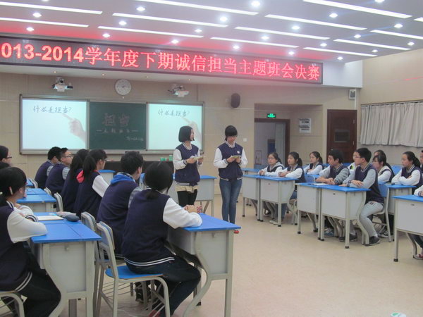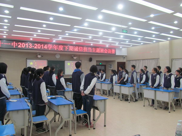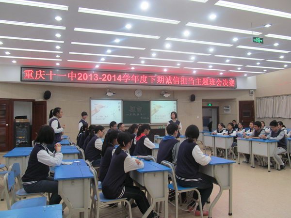 为了加强同学们的担当意识,鼓励同学们敢于担当,2014年4月28日,重庆市第十一中学高2016级一班在博文楼多媒体教室2开展了了“担当”主题班会。