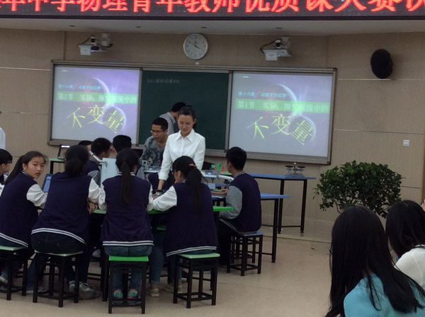 今天的比赛在我校的全体师生员工的共同努力下顺利进行,充分体现了我市高中物理青年教师的教学风采和水平,有力于交流我市高中物理青年教师卓越课堂建设的成果和经验,促进全市高中物理教育教学质量的进一步提高,欢迎全市各校教师现场观摩交流。