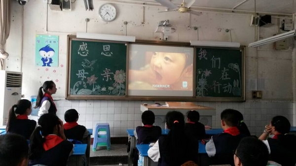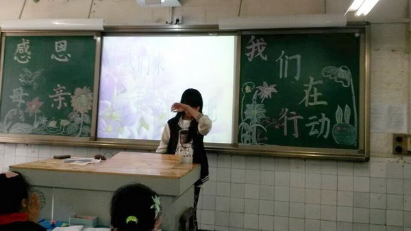 在班会的最后,同学们一齐喊出了埋藏在心中的话语“妈妈,我爱你!”