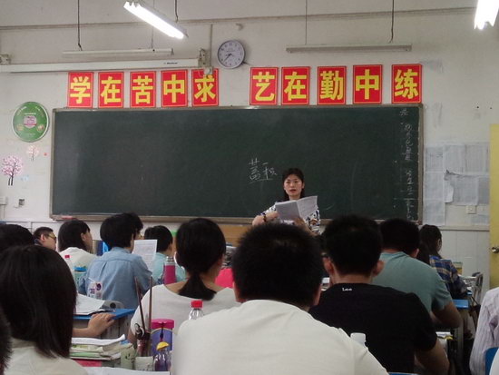 2014年5月13日上午,高2014级语文组封庆老师与田卫老师的同课异构展示课分别在高三12班、高三11班教室举行。本次同课异构以《紫藤》这篇阅读为依托,分别展示了两位老师在阅读评讲课思路的不同处理方式,得到了备课组老师的好评。