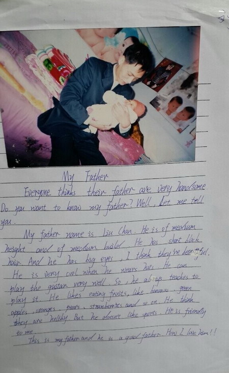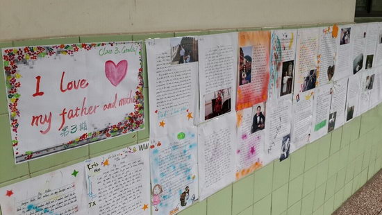 告别了春日的绚丽,我们迎来了热烈的五月。五月,如一首激昂雄壮的歌,唤起人们心中的热血,奋发向上;五月,似一泓甘甜的清泉,滋润人们久枯的心田,重生自信;五月,若一幅长卷,记录同学们光彩的一页页;五月,也蕴藏着那一份父母温情。初一(3)班迎来了“父母时代”。看,那天蓝色的墙上贴着的一张张五彩的作文,真心的照片,绚丽的背影,以及优美的作文,也成了初一(3)班一道美丽的风景线。每一篇优美英语作文,每一张精心挑选的照片都流露出了同学们对自己父母的爱。纸包不住火,更包不住爱,但那一张张小小的作文纸,那一篇篇小小的照片,那一个个小小的字迹……都是数也数不尽的爱。没错,这就是初一三班的“I like my mother and father”秀,于2014-5月隆重上映!