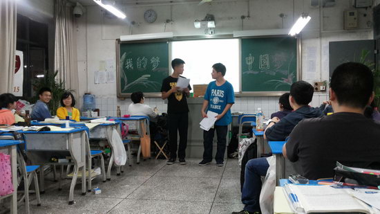 15班正在举行“我的梦,中国梦”的主题班会,同学们都积极地参加这次主题班会,“理解的力量”让人感到拥有理想竟是如此的强大,使冰雪消融,阴霾散开,此时此刻每个同学那个心中的梦开始了。