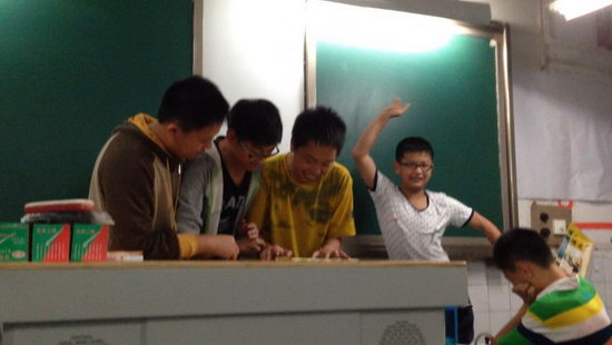 2014年5月29日,初二16班的同学们在晚自习中欢庆六一。经过晚自习前十分钟的精心准备,同学们的歌唱、小品、“打广告”等节目,带来了无尽欢乐。由何文兵小组三人为他自编自唱的《兵哥之歌》,作词新颖,谱曲作死,引得全班同学捧腹大笑;由陈轲小组自编自演的小品,带来了青春的热情,青春的欢声笑语,让我们看到了依旧的童真与青春;虞浚哲小组为飘柔“打广告”的节目,就像晚自习的调味菜,一个小小的广告带来了无尽的快乐……整个初二16班在欢乐的氛围中感受到了六一的临近。