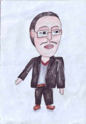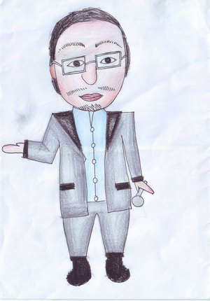 开学几周后,应老师召集几个宣传委员,让他们根据每个学科老师的特征,画出老师们的卡通形象。几个同学分配任务,构思,画草稿,涂上颜色,扫描进电脑,做成老师形象墙。经过反复地修改以及全班同学的帮助下,没过多久,几个活灵活现的老师卡通形象就摆在了大家的眼前:体育老师脖子上挂着口哨,音乐老师唱着动听的歌,历史老师衣着古装拿着扇子……