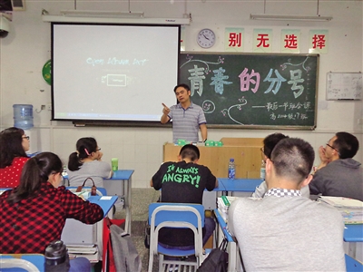 大屏幕,黑白视频,这是一段网络盛传的视频“变化的世界日新月异”,也是高三最后一节课的开场白。画面很简单,充满线条感的漫画配着铿锵有力的话语,其中有好多话是吕老师高考前想给同学们强调的:学习是终身的,高考只是青春的分号。