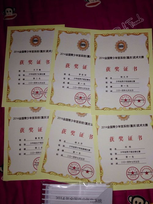 我校武术队5名队员代表学校参加此次比赛,通过顽强拼搏,勇夺4金2银的优异成绩。其中杨久齐荣获少年组男子传统拳第一名、少年组男子传统器械第一名;刘恒获少年组男子规定拳第一名;罗世洋获少年组规定拳第一名;董美莹获少年组女子规定拳比赛第二名;王万鑫获少年组男子长拳比赛第二名;充分展示了我校武术运动员竞技水平的大幅度提升。