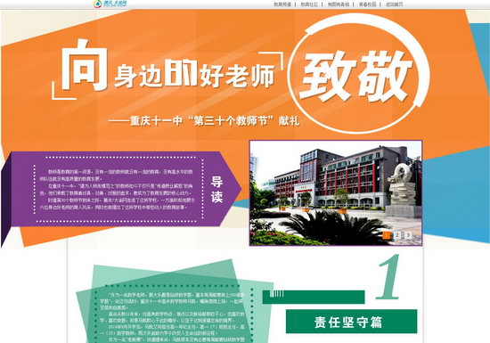 时值第30个教师节到来之际,腾讯•大渝网走进了这所学校,一方面积极地展示六位身边好老师的育人风采,同时也梳理出了这所学校中那些动人的教育故事。