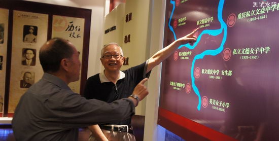 在修德楼前,吴老参观了学校新建的教学楼,远眺运动场、学生宿舍楼,感受到了学校发展为学生提供的各种支持;在校史陈列馆里,吴老仔细观看了母校百年校庆的宣传专栏,提到文幼章先生,吴老满怀真情的说:“文先生是我的英文老师,他教英文教的特别好,对学生也好,几十年过去了,仍然给我留下了非常深刻的记忆”。