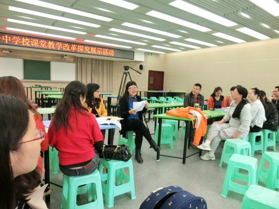 本周初2017级盛邀八年级的老师参加了七年级英语Unit4 Where’s my schoolbag? Section A听说部分的同课异构。今天八年级的王睿老师和我们年级的冷点老师均上了一堂出色的展示课。二位老师各具特色:王睿老师的课堂充分调动了学生的积极性,层次清晰,重难点得到很好地突破,较好的完成了教学目标。冷点老师虽然才出道,但积极好学的她通过多种形式的听说活动,调动了学生的热情,充分展示了go for it 教材的听说课的特点。二位老师均为大家做了很好的教学示范,让全组教师在活跃的课堂中感受到她们的魅力和风采。课后,在刘文春组长的组织下,七、八、九三个年级均分别就二人的课进行了认真的讨论和总结,蒋祥俊和彭梅代表各自年级进行了交叉评课,最后由刘文春总结发言。本次同课异构在初二年级外语组的大力协助下,圆满完成,大家的收获与感悟颇多。