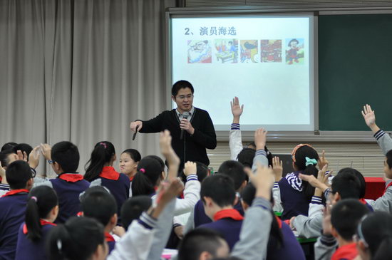 接着,来自南昌的罗田田老师则以一个手势魔术快速拉近了和学生的距离。罗老师在课堂中侧重让学生从文本阅读中概括人物的性格,总结童话故事中人物的共同特点——虚伪。并且让孩子在表演中感受人物的虚伪和作者对他们的讽刺。罗老师仪态优雅、声音甜美,言语幽默,互动自然,整堂课气氛活跃,学生参与度极高。