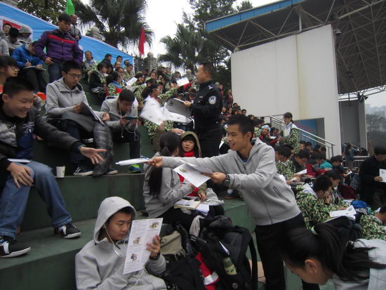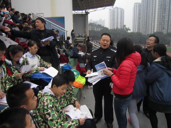 11月21日上午,重庆市十一中学校联合区公安分局校保支队对全校师生开展了反恐宣传教育。