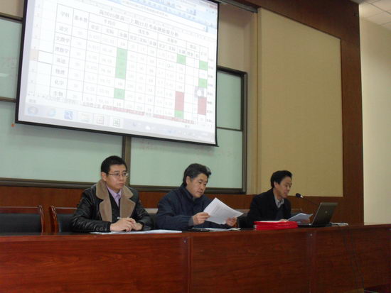 2014年12月15日晚7:00,我校高三年级全体教师在CBD校区科技报告厅召开了12月月考总结大会以及高三年级“青年才俊展风采”赛课活动颁奖仪式。出席会议的领导有学校党委书记兼校长钟进友同志、教务处唐荣龙主任、总务处谢红卫主任、德育处杨喻红主任和年级负责人,德育处李建兵主任。会议由年级组长黄伟老师主持。