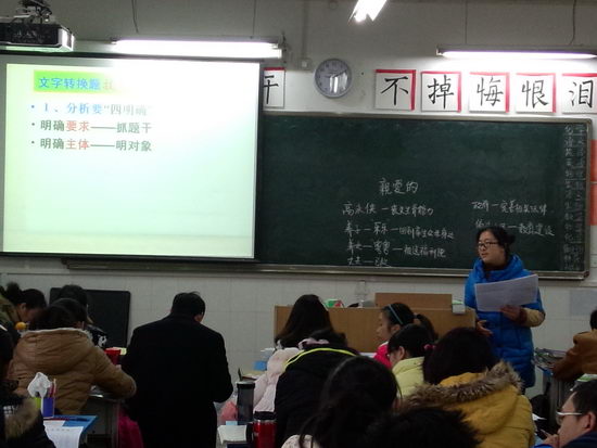 高三一诊复习紧锣密鼓地进行,针对考纲进一步强调学生语文学习的语用能力,高三年级语文备课组于十二月十六日在高三校区开展了以“怎样进行图文转化”为主题的同课异构活动,况玲老师和田春梅老师为大家做了很好的示范。