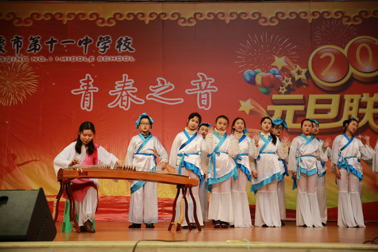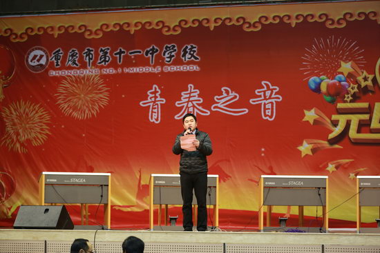 12月30日下午,在欧宾副校长热情洋溢的新年致词中,伴随着屡次获得金奖的双排键电子琴合奏的音乐,重庆十一中初中部2015年 “青春之音 律动校园”元旦文艺汇演正式拉开了帷幕。