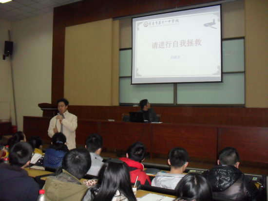 2月8-10日,市内各学校都已放假,老师们高高兴兴度假以待来期再战,而我校高2015级领导小组的同人却在精心组织举办理化生冬令营。冬令营由我校已带多届高三毕业班的化学名师李光亮、实力加偶像派代表生物老师董静莉、优秀班主任物理名师吕清全担任主讲。李老师、董老师侧重分析近几年高考试题的的特点,引导学生从不同的角度解答高考试题,突破难点;吕老师则另辟蹊径,以“请进行自我拯救”为题,重点指导学生进行自我调整,端正心态,朝着自己的目标,矢志不渝奋斗。三天的冬令营,参加的学子收获颇丰,不少学子在接受《重庆晨报》记者采访时表示,他们感动的不只是老师的渊博学识、精当指导,更是老师们的奉献精神。
