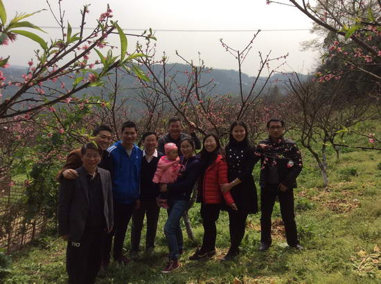 走马桃花节是走马的旅游招牌,我们一行人也体验了一把“走马观花”的感觉。整个桃花山上种满各种桃花竞相怒放,美不胜收。人群穿梭于桃花之中,正应了“人面桃花相映红”之意境。一时间照相机的咔咔声、大人们的交谈声、小孩们的欢歌声充满整个花海,让我们沉醉其中。在整个游览过程中我们相互帮忙搀扶老人,照顾小孩,大家如一家人般温馨和睦。下午3:00,我们离开了走马,在回家的途中意犹未尽地又到了中央公园放风筝,直到晚上7点才聚餐解散。