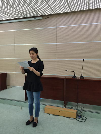 初赛由弹鸡片区组长雷小利老师主持,参加初赛的选手共四位:11中的李慧瑶老师、张雪静老师、鸡冠石学校的李敏老师、38中的付裕老师。8:30,发放说课比赛文章《时间存折》,抽签确定比赛顺序;8:30——10:00,选手闭门独自准备说课稿;10:00,选手依次上台说课。说课选手分别从内容探讨、写法借鉴、情感态度价值观等不同角度解读文本,精神饱满,条理清晰,精彩纷呈。经过片区四位教研组长评分,11中张雪静老师和鸡冠石学校李敏老师最终胜出,将代表片区参加区复赛。