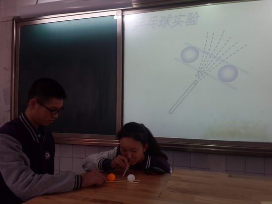 这是一堂特殊而且精彩的物理课,同学们对即将要发生的一切都充满期待。上课铃打响了,几位“小老师”轻松地踏进教室为大家讲解流速与流体压强的关系。首先,他们用生活中的几件事例来引出了今天所要讲的内容。然后,他们和同学们一起做了几个有趣的实验。比如:倔强的纸片——往两张平行的纸中间吹气;高深的乒乓球——向两个静止在桌面上的乒乓球中间吹气。同学们和台上的“小老师”们一起做着实验,从实验的结果中寻找我们需要的答案。接下来,台上的“小老师”们为大家讲解了今天的重要知识点:1、流速与流体压强的关系;2、升力的产生;3、流速与流体压强的关系在生活中的应用。最后,“小老师”们在导学案上摘取并讲解了几道重要的例题。伴随着下课铃声,我们结束了这堂特殊且精彩的物理课。课后赖老师给予了同学们极高的评价。