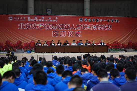 师生、家长代表共同见证北京大学基教中心优秀创新人才培养实验校在十一中揭牌