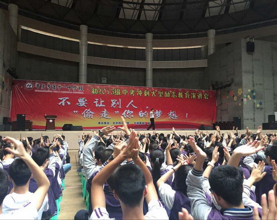 2015年5月12日下午,当一个浑厚的男音在体艺馆中响起,同学们爆发了热烈的掌声。初2015级中考冲刺大型励志教育演讲会——“不要让别人偷走你的梦想”在我校召开。
