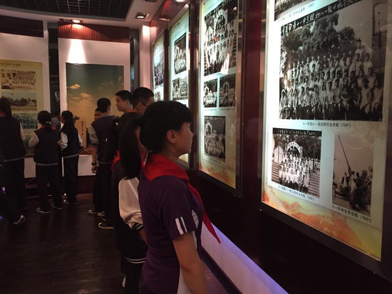 校史馆陈列着多种多样的资料,有学校以前的美丽模样,有烈士名人的感人事迹,有学校各老师的照片……这些都展示了十一中校园的美丽,十一中师生的风采。从建校到你发展再到成为名校,我是第一次如此真切地了解眼前的这所走过百年征程的学校,我被他深深地感动着,并为之感到自豪,心中一直回响着一个声音:“我是十一中人,我为十一中荣。”