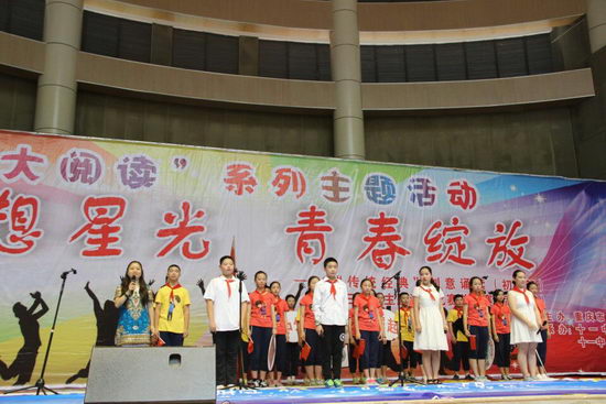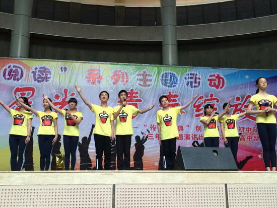 2015年5月19日下午,体艺馆中,明亮的灯光下照映着我们飞扬的青春。在今天,各班翘首以盼的“经典诵读”活动终于开幕了!伴着头顶的灯光,随着耳畔的音乐,看着眼前黑压压一大片的观众,想必表演者们心中也是既紧张又兴奋的吧!