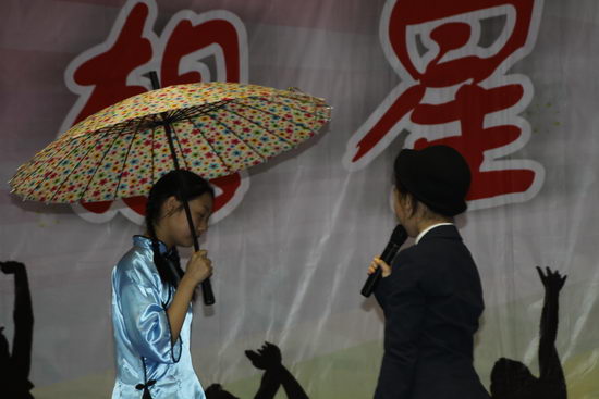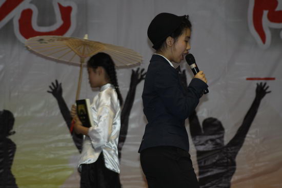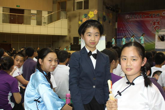 主演张诗邈,本是一个girl,却反串饰演上个世纪20年代进步男青年,将一个有志青年的哀怨和期望演绎得淋漓尽致,真是人小力量大!连学校李顺林校长在观摩后也这样评价:“《雨巷》主角不高,但高度最高。”这次初一(8)班又摘得比赛桂冠,这是继合唱《父亲》后初一(8)班推出的又一动情凄美的歌!