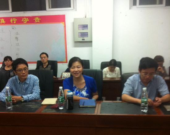 5月22日上午,大雨倾盆,但黄部长一行9点钟就赶到了CBD校区。他们首先巡视了正在进行五月模拟考试的教学楼,然后,亲切看望了正在阅卷的部分老师。黄部长表达了区委区府对战斗在第一线的十一中领导和老师的亲切慰问之情,肯定了十一中多年以来的辉煌成绩;她指出,高考是关乎千家万户的大事,虽然十一中今年的“二诊”成绩骄人,但它并不代表最终的结果,所以,希望大家在最后关头绝不要松懈;她还勉励大家再接再厉,再铸辉煌。区教委李主任也表达了他们班子同人对十一中人的敬佩之意和勉励之情。