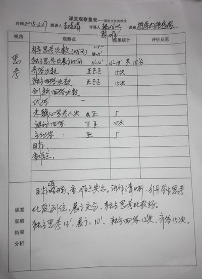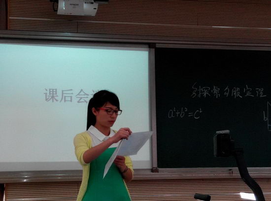 2015年5月27日,重庆市十一中七年级数学备课组课堂观察展示活动于早上8:05分正式在多媒体1室隆重开幕。这次活动不仅有由杨喻虹主任带队的学校地理教研组的全程参与,弹子石片区各兄弟学校数学教研组同仁也带来了他们课堂观察的宝贵经验。在这次活动中,大家深入学习了课堂观察的相关理论,学会了观察工具的设计与使用。完美的课前会议、课中观察和课后会议给这次培训工作增加了不少为靓丽的色彩。吉晓娟老师精彩的课堂展示,是对我校大力倡导的自主学习和合作学习理念进行的一次更加深入的诠释。