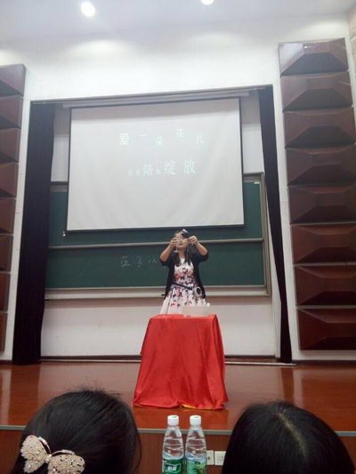 代表高一年级参赛的班主任邓虹老师、童鹏飞老师和马骥老师表现尤为抢眼。童鹏飞老师身着一身爽朗帅气的西装,开门见山,深入浅出,结合作为国际班班主任的实际经验,要用爱心唤醒未来,以生为本,以心养心,尊重和信任每一位学生;而邓虹老师一开口便吸人眼球“学生虐我千百遍,我待学生如初恋”,讲到在与学生的“相恋”到“热恋”的阶段中发生的不同问题必须采取不同的处理方式;马骥老师以“爱一朵花儿,就要陪她绽放”诗一般的开场,用与学生之间的温暖互动感动全场。