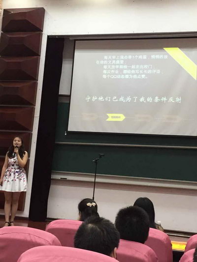 为了进一步提高全校班主任的综合素质和育人水平,建设一支高素质、高品位、高水平的班级管理队伍,5月29日,重庆十一中2014-2015学年度班主任基本功大赛决赛在科技报告厅举行。欧宾副校长与全校班主任老师一同与会观看。此次大赛分为我的班主任观演讲、现场答辩、才艺展示三个环节,内容涉及班主任日常管理工作的点点滴滴,亦能充分展现班主任的魅力风采。经过三轮激烈角逐,最终,青年班主任张雪静、范静、余飞扬夺得特等奖。