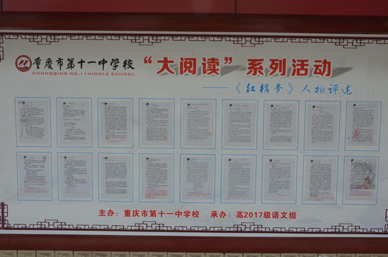 5月28日,为期两周的《红楼梦》人物、诗词书画展完美收关,获得师生一致好评。此次活动是乘着“梦想星光,青春绽放”语文活动周的东风,开展的大阅读系列活动之一。活动由高一语文组策划承办。