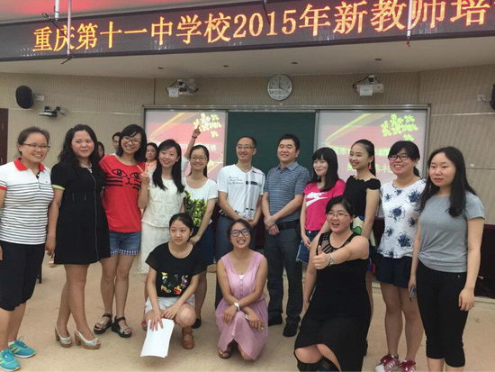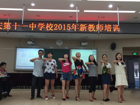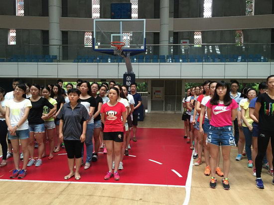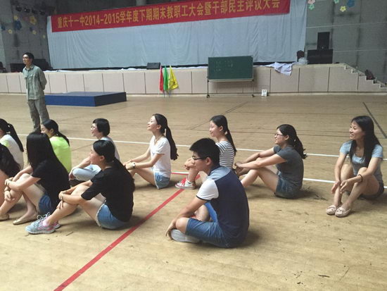 7月14日上午,在新教师培训活动的最后一天,重庆市十一中学校别出心裁地给学员们在体育馆安排了拓展训练。