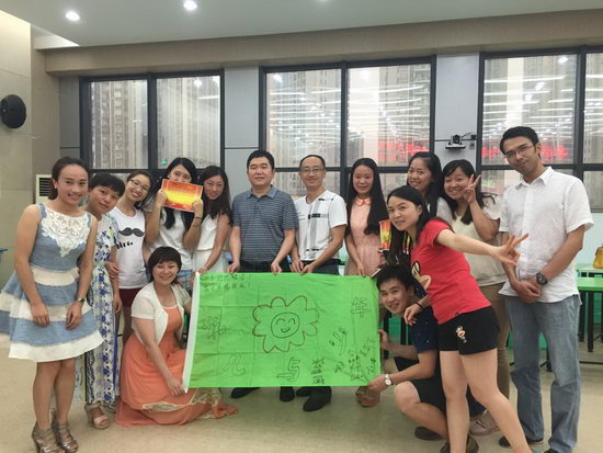 在训练过程中,学员们还进行了“翻扑克”和“一分钟鼓掌”的游戏,在挥洒汗水的同时真真正正地体验了什么是“在玩中学、在做中学”,游戏过后的自我反思和教练意味深长的总结对学员们即将开始的教师生涯都起到了很强的指示性作用。