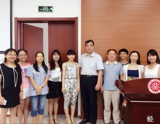2015年7月22日,重庆市第十一中学校文综组的毛阿英、郑云霞、陈秀勤、陈晨、袁森,邹树明、汪建华、邓虹、张怡等老师在北京大学经济学院参加暑期学习。北京大学社会学系教授李义虎为我们做了“一带一路与国家战略”的精彩讲座。李义虎教授为我们讲解了“一带一路”的战略地位、重要特点、独特形式、风险评估与重大意义以及如何推进“一带一路”建设,让我们对于“一带一路”这一国际化的大背景有了更深刻的思考和理解。在课间,重庆11中文综组的老师们积极与李义虎教授交流沟通,探讨学术问题,将“一带一路”这一时事背景与我们的学科相结合进行思考与讨论。在北大的学习,感受着北大的百年韵味和文化气息,让我们收获了很多,有知识性方面的收获,同时也让我们有了与资深北大教授沟通与交流的机会,开阔了我们的眼界,提升了我们的素养,也让我们有了更多的思考。学习仍在继续,我们一直在学习的路上。