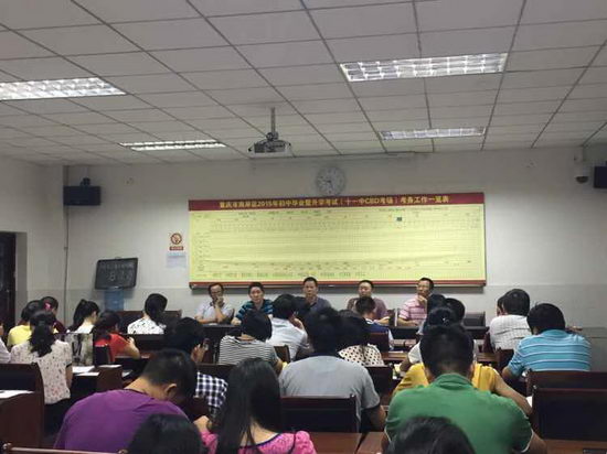 8月29日晚21:00,我校高2016级在CBD 校区考务办公室召开新学期第一次年级教师大会。大会由年级主任潘文荣主持,学校党委书记、校长钟进友,副校长李顺林参加了会议。