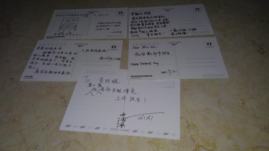 在明信片上“To 贤玲姐姐”、“To 飞娃姐姐”、“To 嫦娥姐姐”、“To 春春”虽然这只是一些简简单单的代号,但还是让我们感到亲切不已。当然,令我眼前一亮的是那几张画上了老师Q版画像的明信片,这的确让她的才华得到了充分的发挥,也让老师眼前一亮。还有一张画上了海绵宝宝送给了我们的“嫦娥姐姐”,虽然“嫦娥姐姐”才到我们班上,但是她让我们迅速了解了她,这正是我们大家所喜闻乐见的。当然在这最可爱的当然还属我们最喜爱的春春了,虽然他人已中年,但还是有着孩童般的笑脸,他笑起来,脸上肉嘟嘟的肉,让我们看了的确十分开心,这也正是我们所喜闻乐见的。此乃教师节福袋第一项。
