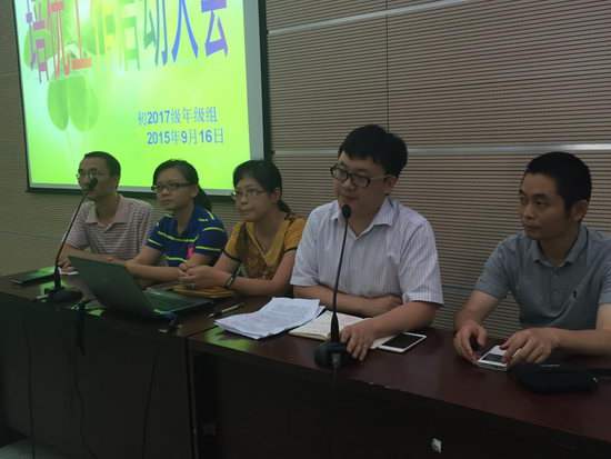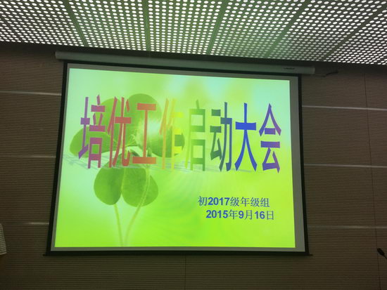 为了做好年级的培优工作,为学校输送更多的优秀人才,9月16日下午,初2017级在体育馆阶梯教室召开了培优工作启动大会。本次参会的有:年级组长李江老师、彭小永老师;英语备课组长刘元老师、数学备课组长马兰老师、语文备课组长敖天明老师以及14班班主任余飞扬老师,各个班级的优生代表也参与其中。